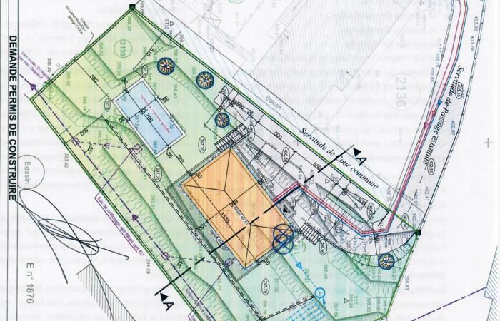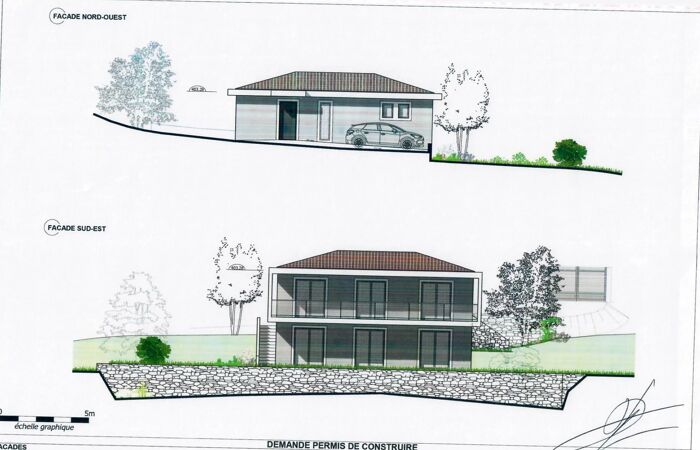TERRAIN AVEC PERMIS accepté TERRAIN AVEC PERMIS accepté pour la construction d'une maison individuelle de type traditionnel avec une toiture à quatre pentes comprenant deux niveaux pour une surface de plancher de 119.90 m². L'accès à la maison se fera par le R+1. Le projet prévoit également un aménagement comprenant trois places de stationnement, ainsi qu'une piscine de 3.5 x 7 m. D'un point de vue paysager, le projet est situé au nord-ouest du village historique, avec une vue sur ce dernier, sur un versant sud-est. Situé dans un environnement calme et recherché, ce terrain offre une belle opportunité de concevoir un cadre de vie agréable.