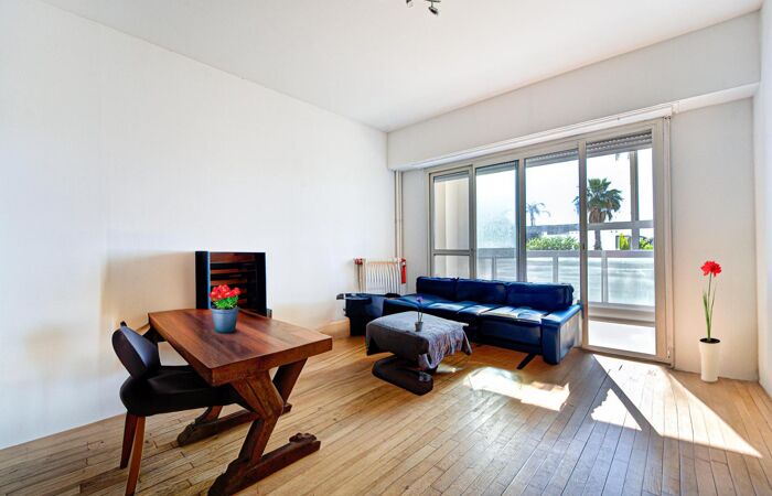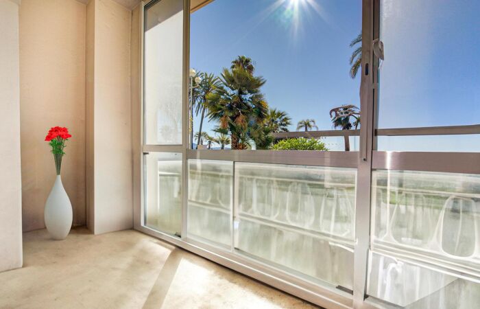 Promenade des Anglais 2 pièces - Nice - Bord de Mer - Promenade des Anglais/Carras agréable 2 pièces traversant de 54,71m² + Loggia 4,80m² face mer en rez de chaussée. Il est composé d'un séjour avec cuisine américaine en sud sur loggia, une salle de bains, un wc, rangements, chambre côté avenue de la Californie. Le logement est à rafraichir. A 2 pas de la mer, du tramway et de tous les commerces. Appartement actuellement loué sera libre fin 2025. Le bien est soumis au statut de la copropriété , la copropriété comporte 24 lots , la quote-part budget prévisionnel (dépenses courantes) est de 1 840,00 euros/an.