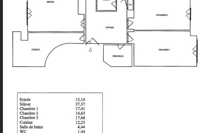 4 pièces 110m² avec une entrée, une cuisine séparée, 3 chambres, un séjour double, une SDB, un WC, une cave, une mansarde