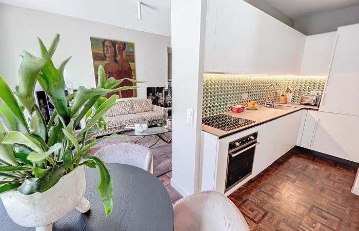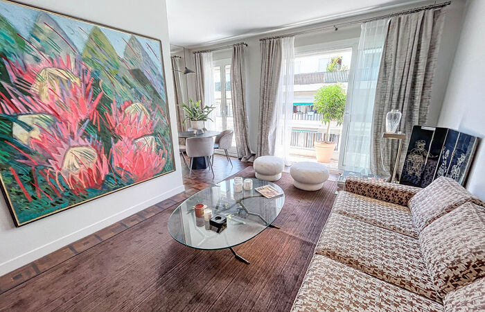 Sublime appartement d'architecte de 60m2 en excellent état avec balcon en plein sud. Au 4ème étage dans un immeuble avec ascenseur et gardinenne. Bien agencé, climatisation et vendu avec une cave. Un vrai bijou!