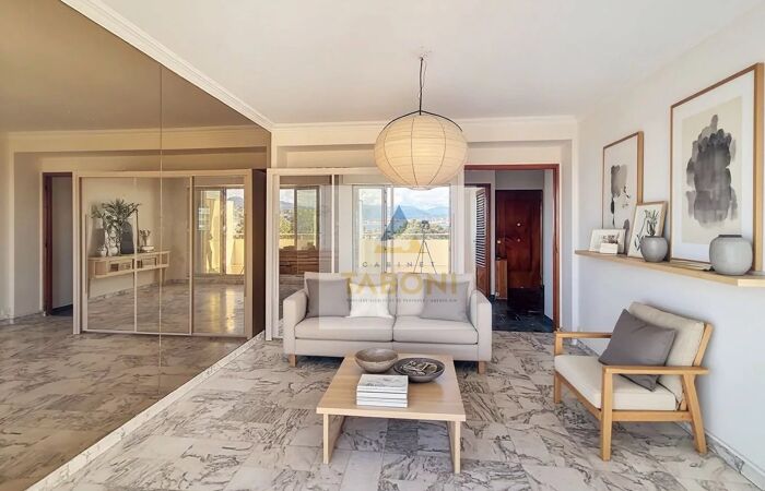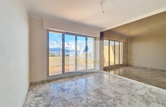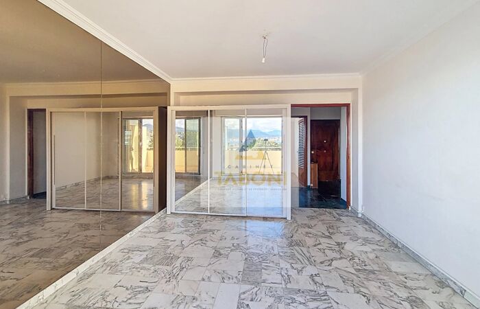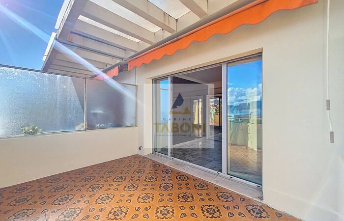 2 PIECES - RENE CASSIN - DERNIER ETAGE - TRAVERSANT VUE MER Bd René Cassin - À seulement 50 m du tramway, au sein d’une copropriété sécurisée avec gardien, découvrez ce très beau 2 pièces de 39,73 m² Carrez (46,43 m² avec loggia) situé au dernier étage. L’entrée s’effectue par une loggia lumineuse avec rangements, donnant accès à un dégagement distribuant les différentes pièces; Séjour lumineux ouvert sur une magnifique terrasse sans vis-à-vis offrant une vue exceptionnelle sur la mer, la verdure, la ville et les montagnes. Cuisine indépendante. Chambre de 9,2 m², salle de bains et WC indépendant. Double vitrage. Cellier. En supplément, possibilité d’acquérir un grand garage de 22 m². Réf. - Honoraires à la charge du vendeur - Nombre de lots dans la copropriété: 116 - Montant moyen de la quote-part de charges courantes 2 073,12 euros/an - Aucune procédure en cours (articles 29-1A/29-1 loi 65-557, L.615-6 du CCH) - Classe énergie 245 kWhEP/m².an (D) - Classe climat 36 kg CO2/m².an (D) - Montant estimé des dépenses annuelles d'énergie pour un usage standard, établi à partir des prix de l'énergie de l'année 2021 : 850euros ~ 1200euros - Les informations sur les risques auxquels ce bien est exposé sont disponibles sur le site Géorisques : georisques.gouv.fr - TABONI TRANSACTIONS - Non-détention de fonds - SIRET 0040 - CPI 11342