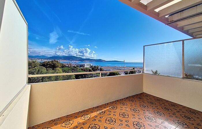 Carras - Bd René Cassin, dans copropriété avec gardien, en dernier étage 2 pièces traversant de 39.73m² (46.43m² au sol) ouvert sur magnifique terrasse de 9.5m² avec magnifique vue mer/ville/verdure. Entrée via une loggia, séjour ouvert sur terrasse, cuisine indépendante. Chambre de 9.2m², salle de bain et wc indépendant.