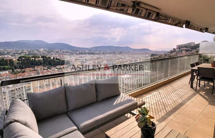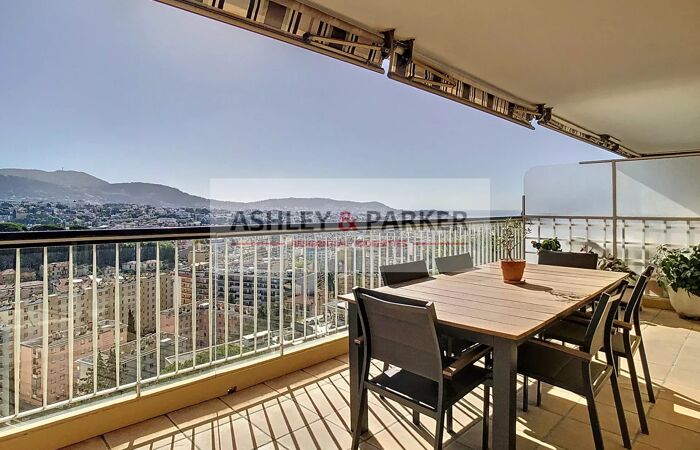 Appartement 4 pièces NICE NORD : Proche Horloge CESSOLE. EN EXCLUSIVITÉ : Dans une résidence de STANDING avec PISCINE et GARDIEN. SPACIEUX 4 pièces d'une superficie de 100 m² En avant dernier étage, et disposant d'une TERRASSE de 38m², l'appartement offre une vue panoramique sur les collines et la mer. TRAVERSANT Est/Ouest, il se compose d'une belle entrée, d'un vaste séjour d'angle donnant sur la terrasse, d'une suite parentale comprenant une grande chambre, un dressing, une salle de bains avec WC, et également un accès à la terrasse, une chambre avec de grands placards intégrés, donnant sur un balcon filant, une chambre actuellement utilisée comme bureau, avec un grand placard de rangement, une salle de douche et un WC indépendant. Une place de stationnement en sous-sol et une cave viennent compléter ce bien.