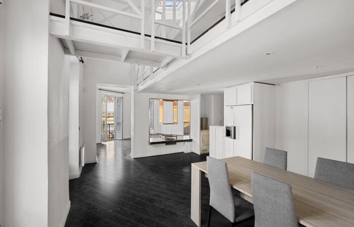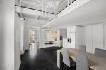 D'une superficie totale de 120m2 (90m2 au sol + 45m2 en mezzanine) l'appartement est très lumineux et se compose d'un séjour de 27m2 ainsi que d'une cuisine ouverte sur salle à manger de 38m2.