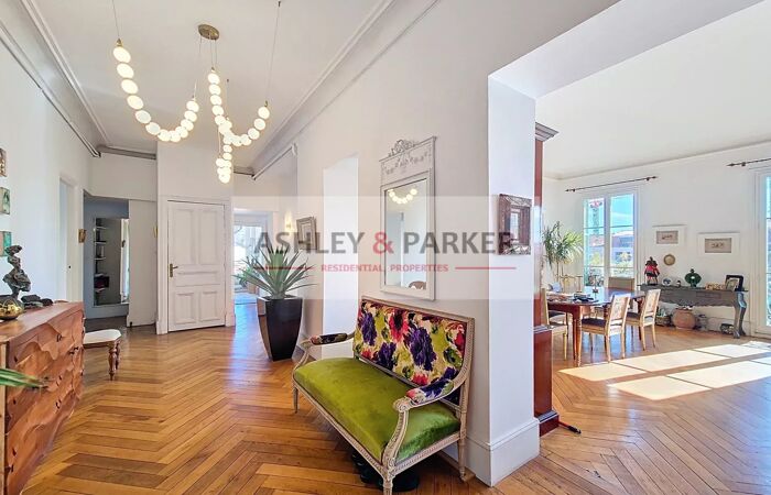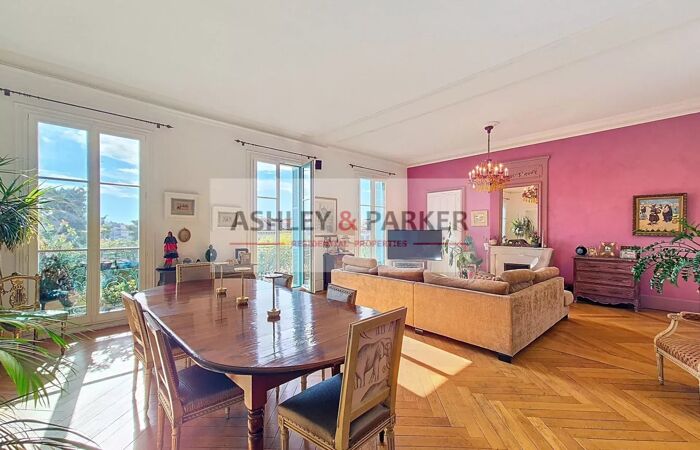 Appartement 7 pièces NICE / CARABACEL - Magnifique appartement BOURGEOIS plein SUD dans PALAIS BELLE ÉPOQUE - Beaux VOLUMES, VUE dégagée, STATIONNEMENT double. En retrait du boulevard et donnant sur la VERDURE, au sein d'un superbe palais à la FACADE RÉNOVÉE, venez découvrir ce magnifique appartement D'ANGLE ET TRAVERSANT de 213m2 en étage élevé et en très BON ÉTAT. Il se compose d'une BELLE ENTRÉE ouvrant sur un DOUBLE SÉJOUR Sud de plus de 50m2 avec balcons et cheminées. 4 CHAMBRES CONFORTABLES (15 à 30m2) un bureau, 2 salles de bains et une JOLIE CUISINE moderne équipée. Parquet, moulures et BELLE HAUTEUR SOUS PLAFOND Environnement CALME, résidentiel et verdoyant Proximité immédiate des transports et commerces STATIONEMENT extérieur double Superbe résidence bourgeoise au cœur de ville... A VISITER !
