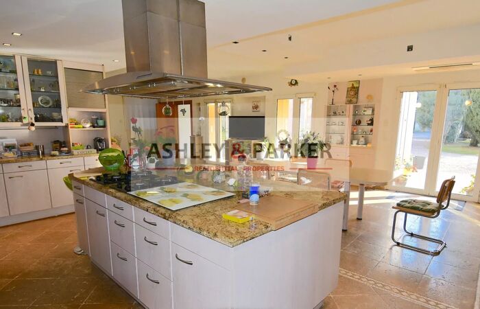 MAISON 9 PIECES VAUCLUSE-CARPENTRAS- Venez découvrir cette propriété EXCEPTIONNELLE de 680 m2 fondue dans un PARC paysagé de 5000 m², avec piscine chauffée. Havre de paix pour une famille, idéale pour créer des chambres d' hôtes. Imaginée et conçue par un ILLUSTRE artiste, elle offre des prestations de LUXE, des matériaux nobles tel que le marbre, le cristal et l' acajou. Une aile contemporaine est venue agrandir le mas d' origine ce qui offre la possibilité d' en faire DEUX habitations. Le mas restauré d' une surface de 250 m² se compose d' une cuisine avec cellier attenant, d' un salon de 70 m² avec cheminée, d' un séjour prolongé par une agréable véranda de 28 m², d' une chambre avec dressing et d' une salle de bain. Un atelier et une belle lingerie complètent ce premier niveau. Vous découvrirez à l'étage, deux chambres, une salle d'eau, une salle de bains et un bureau. La partie contemporaine d' une surface de 430 M² se compose en rez de jardin d' une salle de réception PRESTIGIEUSE de 140 m² dotée d' un SPECTACULAIRE double escalier en VERRE et ACAJOU, d' une cuisine de 70 m² entièrement équipée avec ILOT CENTRAL, cheminée, d' une cave à vins d' une capacité de 3000 bouteilles. Vous accéderez à l'étage par cet escalier UNIQUE ou par l' ASCENSEUR qui vous mènera à une suite parentale de 95 m² avec TERRASSE, salle de bains, sauna et DOUBLE dressing. Une 2ème chambre de 50 m² avec bibliothèque et salle de bains. La propriété est domotisée, climatisée et possède une CHAMBRE FORTE. Dans le parc paysagé, une piscine (11,50 x 5,50) chauffée, protégée par un volet roulant, un pool house offrant douche, sauna 5 places, salon et cuisine d'été. A l'arrière de la propriété, la propriété possède une entrée indépendante qui accède à un garage pour deux ou trois véhicules Le charme d'une belle SERRE pour la culture de plantes ou fleurs. Deux forages. Arrosage AUTOMATIQUE. Alarme extérieure, périmétrique, volumétrique. Cette propriété atypique et FABULEUSE vous conquerra de par son charme, sa tranquilité, son caractère UNIQUE et PRESTIGIEUX.