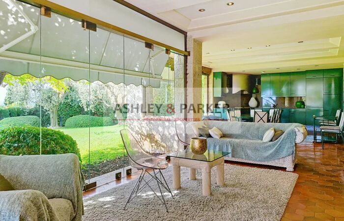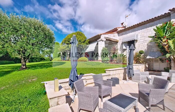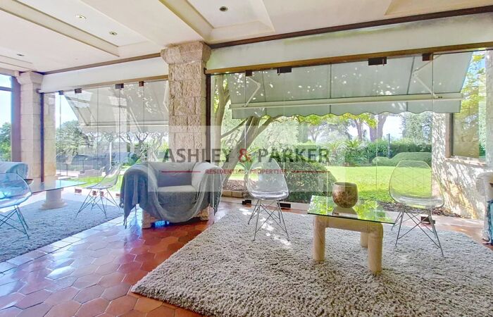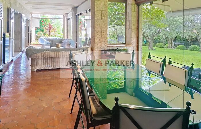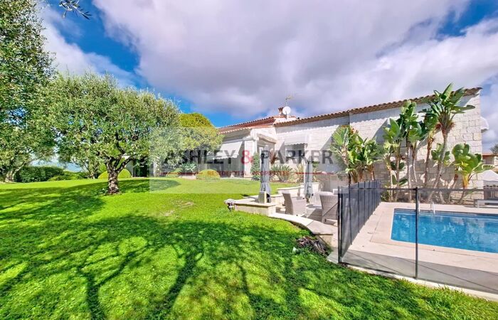 VILLA 8 PIÈCES NICE - FABRON - VILLA D'EXEPTION de 360m² au CALME, avec PISCINE, sur TERRAIN PLAT de 2 260 m², baignée par un SOLEIL levant et couchant, entre mer et montagnes. Cette magnifique demeure familiale édifiée dans un écrin de verdure dans les années 1980, a été conçue pour être en CONTACT DIRECT AVEC LA NATURE durant toute l’année avec une VASTE TERRASSE-VERANDA aménagée, tel un jardin d’hiver dotée d’une grande salle à manger et d’une cuisine d’été haut de gamme s’intégrant dans un univers verdoyant aux grandes vitres repliables. Un DOUBLE SALON surplombe la pelouse aux pentes douces et la PISCINE en contre-bas. Cette maison construite dans les règles de l’art aux murs épais en PIERRE DE TAILLE est intelligemment distribuée. Son état de conservation est remarquable et a été bien entretenu par ses propriétaires. Cette demeure est restée dans la même famille depuis sa conception. Elle se compose d’une entrée principale qui ouvre sur un vaste salon avec une imposante CHEMINEE et PAVEMENT EN TERRE CUITE FAIT MAIN. Une DOUBLE CUISINE et salle à manger avec dépendances prennent place à ces côtés. Elle est ornée de marbres et granits au goût choisi avec un matériel culinaire de la marque Gaggenau. L’ensemble du mobilier a été conçu sur mesure. Un couloir scandé de fenêtres contourne ces espaces, jusqu’à l’entrée principale, il est doté de toilettes pour invités et mène aux parties privatives offrant 3 BELLES CHAMBRES possédant chacune d’elle leur salle de bains et un DRESSING pour la chambre de maître. En plus, de la qualité des matériaux qui les composent, deux d’entre elles sont agrémentées par des céramiques conçues par le célèbre ROGER CAPRON, recherché par les designers actuels. Un escalier situé près de l’entrée principale mène à l’étage inférieur où se trouvent DEUX APPARTEMENTS de DEUX PIECES, tous deux donnant sur une AMPLE TERRASSE ENSOLLEILEE. Ce niveau est desservi par le même escalier qui permet d’accéder à un vaste espace comprenant un GRAND GARAGE pour plusieurs voitures, buanderie, cellier, local technique, cave à vin. Ce sous-sol est une sorte de vide sanitaire conférant à cette villa une assise saine . L'AMPLE JARDIN PAYSAGER est ordonné avec élégance, il est mis en valeur par un éclairage et possède un système d’ARROSAGE AUTOMATIQUE alimenté par une citerne d’eau agricole. La PISCINE aux dimensions de 12 x 7 m² exposée SUD est prolongée par une plage pouvant accueillir transats et table pour déjeuners conviviaux. La LOCALISATION STRATEGIQUE de cette propriété au sein de ce quartier résidentiel de FABRON est remarquable, elle est pourvue de différents accès menant rapidement à la Promenade des Anglais, à l’autoroute A8 vers l’aéroport de Nice, vers l’Italie et les stations de ski. Elle est desservie par des transports en commun, entourée d’écoles, commerces et hôpitaux.