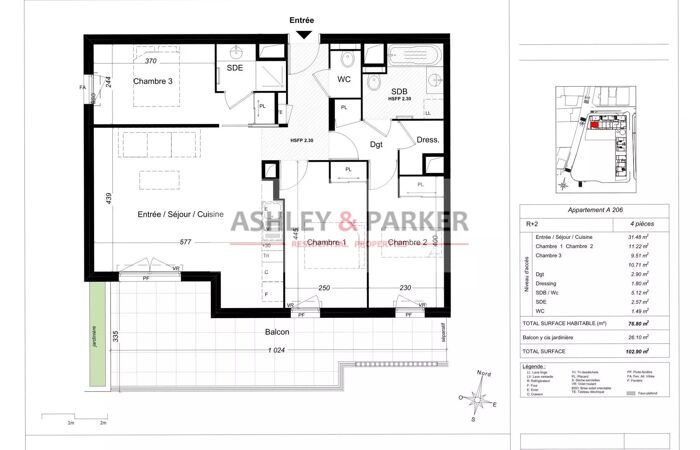 - Surface du balcon : 26.1 m²