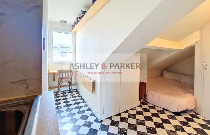 MANSARDE 4m2 NICE - CARRE D'OR - DERNIER ETAGE - MANSARDE CALME A' 1 MIN DE LA PLAGE Dans un bel immeuble BOURGEOIS, à 100 m de la MER et de la PROMENADE DES ANGLAIS, au cinquième et dernier étage, ce logement MANSARDE' de 12.76m² au sol (hauteur sous plafond de moins de 1m80), est très LUMINEUX et bénéficie d'une VUE DEGAGEE. Il se compose d'un coin cuisine, d'un coin nuit, d'une salle d'eau avec un WC. A' DEUX PAS DE LA PLAGE ET DE LE ZONE PIETONNE. Ce bien ne peut pas être loué. IDEAL PIED-A-TERRE