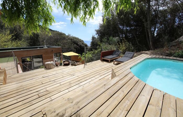Villa Eze surplombant la mer EZE VILLAGE : Surplombant la Mer, dans une réserve naturelle, en dessous du fameux restaurant la Chèvre d'or, à 10 mn à pied du village, venez découvrir cette exceptionnelle et rarissime Villa entièrement rénovée, unique par son emplacement, seul au monde, dans un écrin de verdure, avec vue mer et foret au soleil Levant. La maison a été entièrement rénovée, exposée Sud et Est sur un terrain de 278 m2 avec une piscine. Elle se compose de 3 espaces de vie tout en bois lui conférant un charme indéniable s'intégrant à merveille dans ce lieu hors du temps, un vaste Salon cuisine américaine plein soleil ouvert sur la terrasse par de larges ouvertures, baigné de lumière, une salle d'eau avec WC complète ce premier espace; au dessus sur la deuxième terrasse avec la piscine se trouve les 2 chambres en enfilade avec une salle de douche; un magnifique salon d'été tout ouvert permettant de vivre en extérieur pourra facilement se fermer selon vos préférences. Ne ratez pas cette opportunité ! Rendement locatif très intéressant de 7% depuis de nombreuses années. Idéal pied à terre, résidence secondaire ou investissement locatif. Venez découvrir ce coin de paradis dans un havre de paix. Les informations sur les risques auxquels ce bien est exposé sont disponibles sur le site Géorisques : georisques.gouv.fr