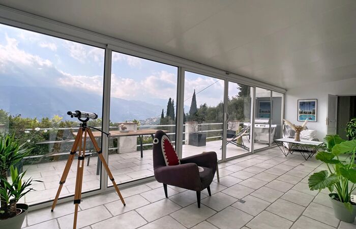 SAINT BLAISE- MAISON 5P A 5mn d'Aspremont, dans un écrin de verdure au calme absolu, maison individuelle atypique de 200m². Edifiée sur un terrain de 1172m², cette propriété offre un cadre idyllique et apaisant parfait pour les amoureux de la nature et de tranquillité. Vous trouverez un salon séjour de 33 m² chaleureux avec sa cheminée, une véranda baignée de soleil idéale pour admirer le panorama sur les collines et la mer sans vis à vis. En plus de ses deux chambres et de sa salle de bains, la maison offre un espace supplémentaire avec une mezzanine de 39m² agrémentée de sa chambre/salle d'eau de 30m². Un studio indépendant vient compléter ce bien d'exception. Le garage et la proximité des commodités ajoutent confort et praticité à ce bien. A visiter sans tarder. Les informations sur les risques auxquels ce bien est exposé sont disponibles sur le site:georisques.gouv.fr