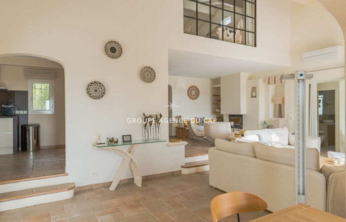 Vue dégagée jusqu'à la mer pour cette superbe villa aux prestations récentes dans l'un des plus beaux domaine sécurisé et à proximité des golfs et commerces. Salon et salle à manger, 4 chambres avec chacune leur salle d'eau, cuisine entièrement équipée, bureau en mezzanine. Piscine et boulodrome.