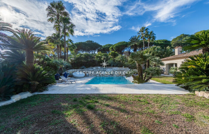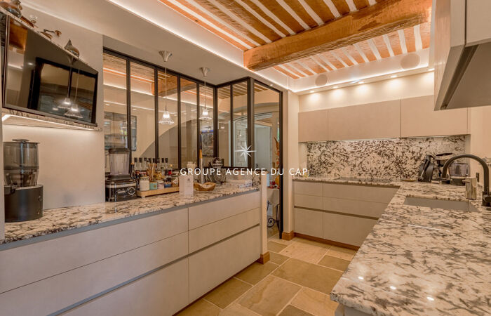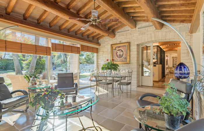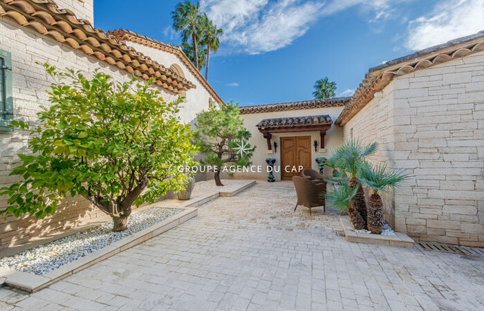 Développant 9 pièces, la villa séduit immédiatement par son charme authentique, la qualité exceptionnelle de ses prestations et son magnifique jardin paysager, richement arboré de palmiers et d'essences méditerranéennes, offrant un cadre de vie intime et préservé.