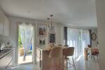 Villa proche écoles et commerces, composée d'un séjour double lumineux ouvert sur une cuisine moderne entièrement équipée avec arrière-cuisine/buanderie, ainsi qu'un WC indépendant. Jolie jardin agréablement arboré avec coin cuisine d'été couvert.