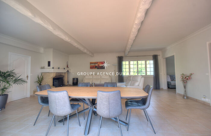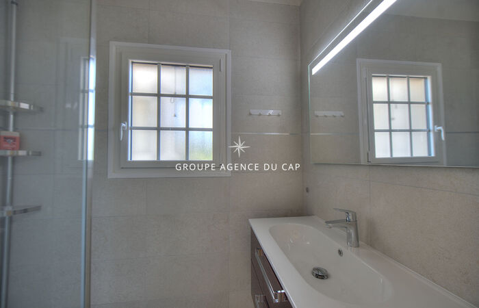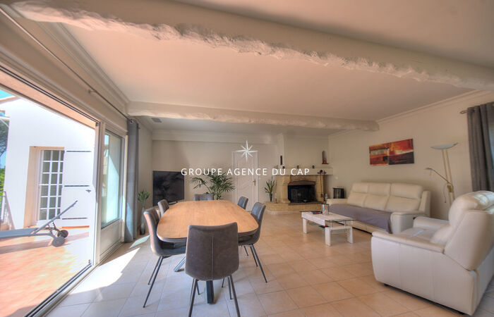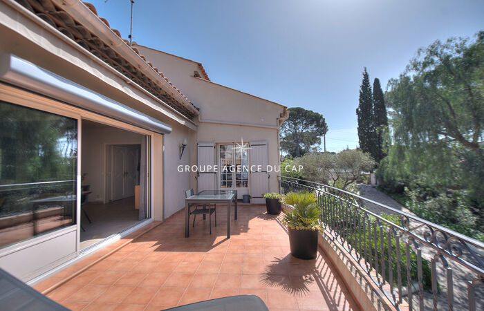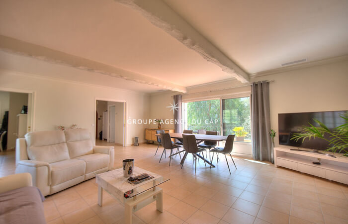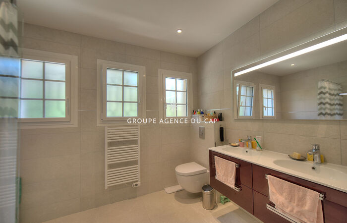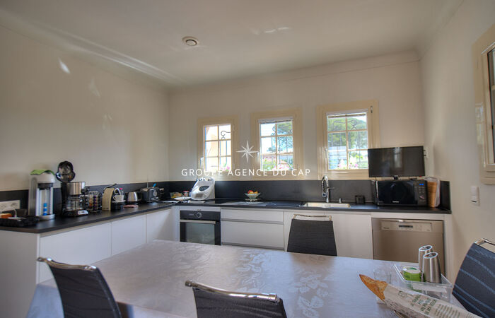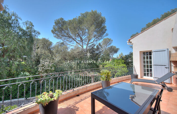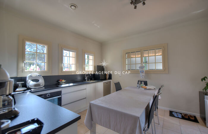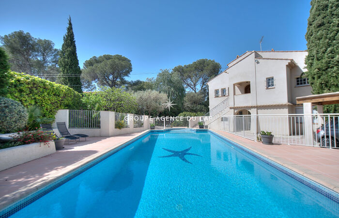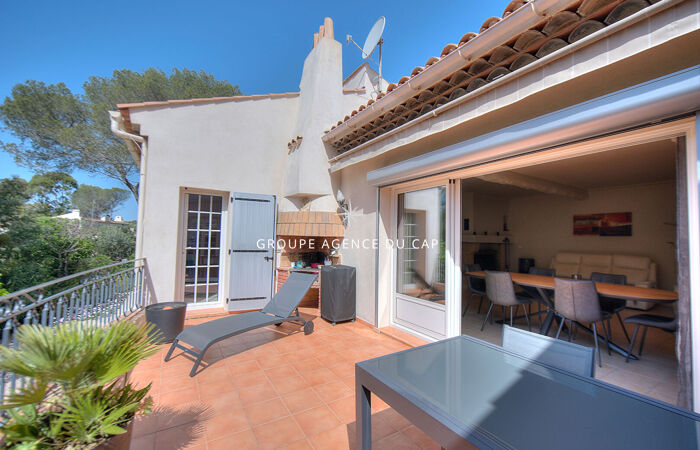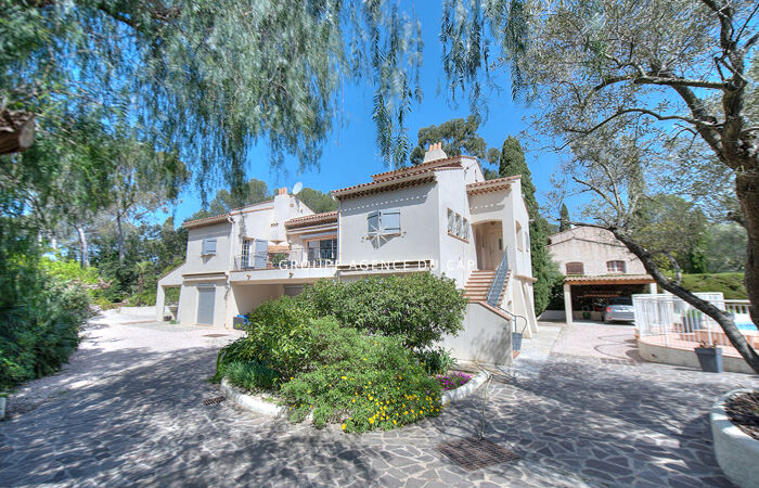 Boulouris proche mer et commerces, très bel appartement 4 pièces en dernier étage, situé dans une villa divisée en de 2 lots, nichée dans la verdure et partageant une jolie piscine avec ses plages ensoleillées. Cet appartement de 133m² comprend une entrée avec WC invités, buanderie cellier et cuisine indépendante toute équipée, un vaste séjour lumineux de 45m² avec cheminée et sortant sur une large terrasse de 21m² plein sud. Une chambre avec salle d'eau privative, une autre chambre de 20m² avec dressing, une 2eme salle d'eau avec wc et une 3eme chambre actuellement aménagée en bureau. Cet appartement est desservis par un escalier et un ascenseur. Vous profiterez de l'espace piscine avec ses plages et d'un abris voiture pour 2 véhicules. Le tout parfaitement au calme et à pieds des commerces et de la mer. Coup de coeur!