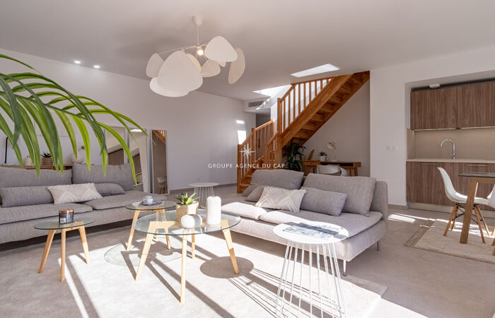 Appartement 4 pièces de 109,06 m², habitable immédiatement,. Séjour spacieux, balcon de 16,68 m² et superbe terrasse en roof-top de 91,83 m² avec vue mer et montagne.