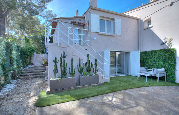 Situation exceptionnelle, MER, PLAGES ET ACTIVITÉS NAUTIQUES A PIED IMMÉDIAT, pour cette villa de style bastidon d'environ 92 m2 avec 170 m2 de jardin. Pied-à-terre idéal pour vos vacances, ou le locatif, au calme, vue sur les roches rouges et ans aucun vis-à-vis.