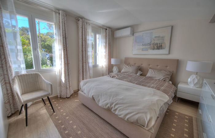 La villa entièrement rénovée, en parfait état, avec de très belles prestations, est vendue meublée avec des éléments de belle qualité. Au rez-de-jardin, vous trouverez le séjour/salon avec splendide cuisine américaine, donnant sur le jardin par une large baie vitrée exposée sud et une salle d'eau avec toilette. À l'étage, une chambre domine.