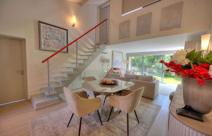 La villa entièrement rénovée, en parfait état, avec de très belles prestations, est vendue meublée avec des éléments de belle qualité. Au rez-de-jardin, vous trouverez le séjour/salon avec splendide cuisine américaine, donnant sur le jardin par une large baie vitrée exposée sud et une salle d'eau avec toilette. À l'étage, une chambre domine.