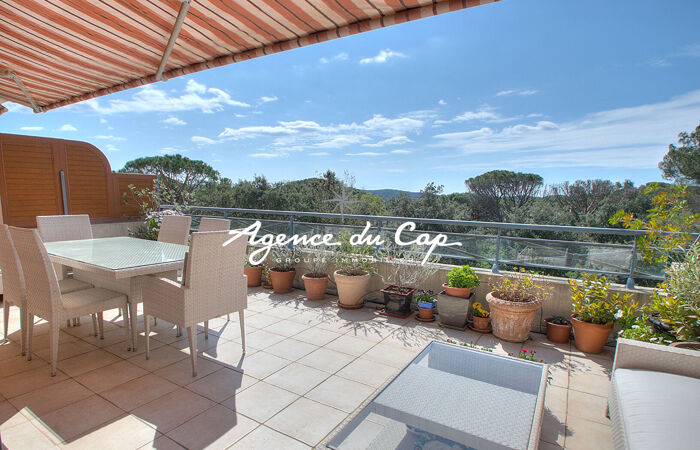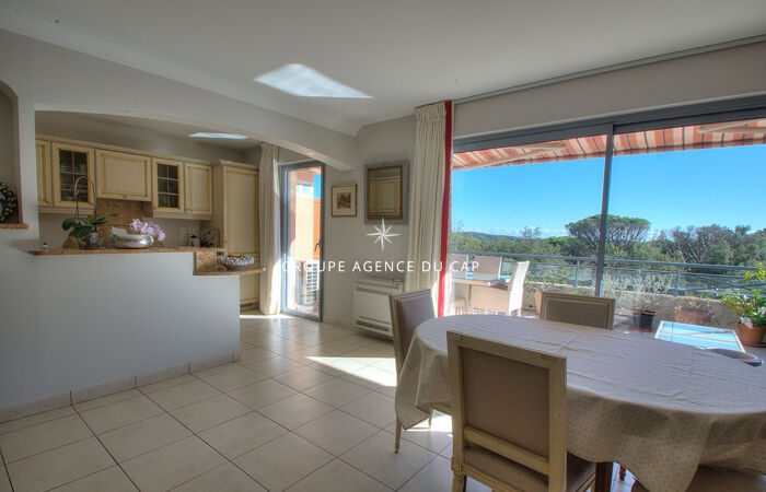 Situé dans la verdure à Valescure, cet élégant appartement de 109 m2 sans vis à vis offre un cadre de vie exceptionnel, alliant calme et nature. Au dernier étage d'une petite résidence sécurisé dans un beau parc avec piscine, il bénéficie d'une localisation idéale pour des promenades dans l'Esterel et l'accès aux golfs, avec d'un côté une vue dégagée sur les montagnes de l'Esterel, de l'autre sur la pinède et le golf. Un petit centre commercial est joignable à pied en 15 minutes et en 5 minutes en voiture.