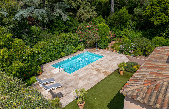 Le jardin possède une piscine, terrain arboré, arrosage automatique, un garage et un abris voiture.