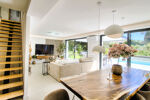 Entièrement rénovée avec des prestations de qualité, cette villa de plain-pied offre une entrée accueillante, une cuisine ouverte entièrement équipée, ainsi qu'un vaste séjour lumineux avec salon et salle à manger, sublimé par de larges baies vitrées donnant sur une terrasse et une piscine exposée plein sud. Elle dispose également d'une suite parentale avec dressing et salle de bains avec douche, d'une seconde chambre avec salle d'eau privative, d'une buanderie et de toilettes invités.