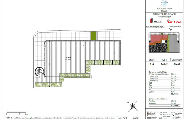 - Surface terrasse : 92 m²