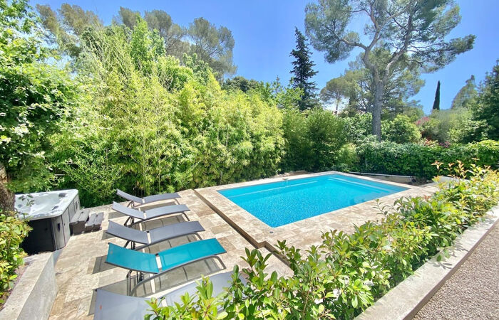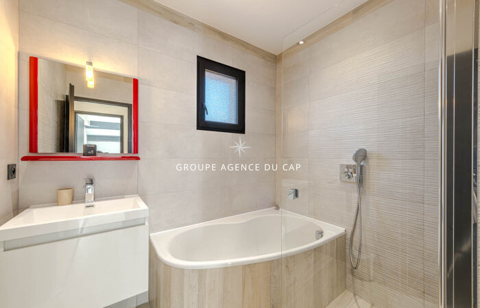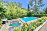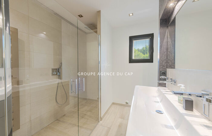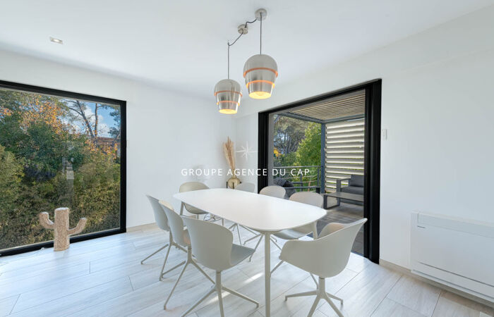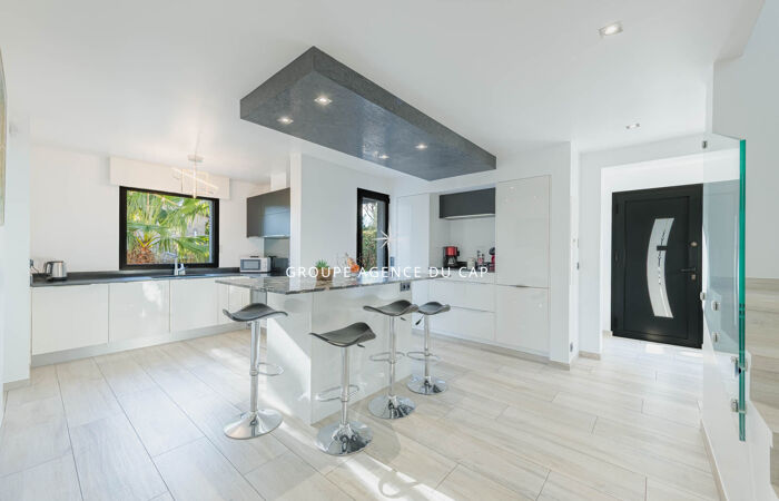 EXCLUSIVITE. Idéal, pour une grande famille, ou investissement locatif saisonnier. Cette villa contemporaine, parfaitement au calme, est située dans un quartier résidentiel de Fréjus. Elle développe sur 250 m 2, avec une partie principale de plain-pied, comprenant : entrée et cellier, très généreuse cuisine aménagée, un beau séjour / salon ouvert sur terrasse agencée d'une pergola bioclimatique, une chambre parentale avec salle d'eau et dressing. À l'étage, un palier dessert deux belles chambres et une salle d'eau, chaque chambre donnant sur une belle terrasse. Au rez-de-jardin, vous bénéficierez d'une belle cave à vin, d'une pièce de rangement, d'une salle de sport, d'une salle d'eau buanderie, et d'une grande pièce de 30 m2 laissant l'option de sa destination ( chambre, salon, salle de jeu etc.). Une deuxième partie indépendante, s'organise en un appartement 2 pièces, comprenant, entrée, salon, avec cuisine ouverte, chambre, salle d'eau, et sa propre terrasse et son jacuzzi. Le jardin entièrement aménagé est agrémenté d'une piscine, de plusieurs stationnements et d'un garage à ouverture électrique. Aucuns travaux à prévoir.