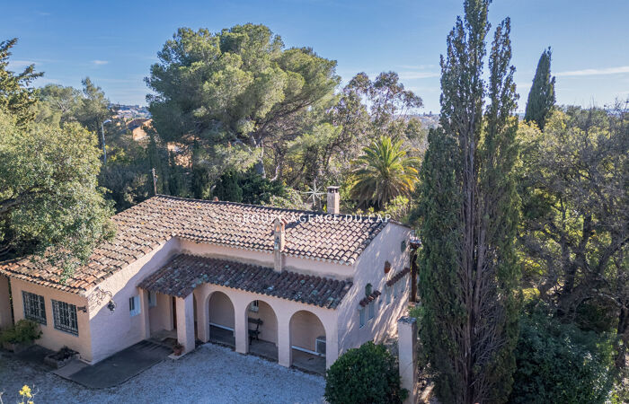 Le terrain, magnifiquement arboré d'essences méditerranéennes, accueille une belle piscine avec larges terrasses, alimentée par un forage, offrant un cadre de vie paisible et préservé.