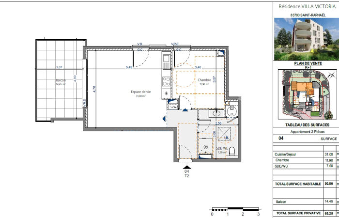 Situé dans une petite résidence de 10 lots proche du centre ville de ST Raphael, à 3km du bord de mer, bel appartement neuf de 2 pièces, d'une surface de 50m² environ avec terrasse de 14m² bien exposée, un séjour de 31m² avec coin cuisine, une chambre, une salle d'eau avec WC. Ascenseur et prestations modernes et actuelles.