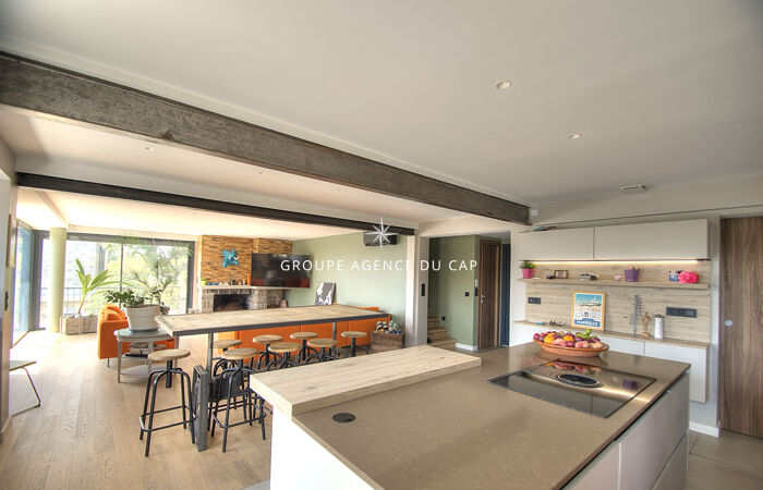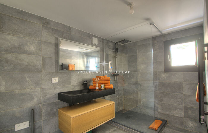 Au rez-de-chaussée, vous serez accueilli par une grande pièce à vivre de 58 m², agrémentée d'une cuisine américaine moderne entièrement aménagée et équipée. Vous trouverez également une buanderie et un WC. À l'étage, la villa propose un dressing, deux chambres vue mer, un dressing, une salle d'eau, ainsi qu'une master suite vue mer avec grand dressing, salle de bains + douche et WC. Au rez de piscine, une pièce à vivre d'environ 30 m² avec cuisine US, une grande chambre, une petite chambre, une salle d'eau et un WC complètent ce bien.