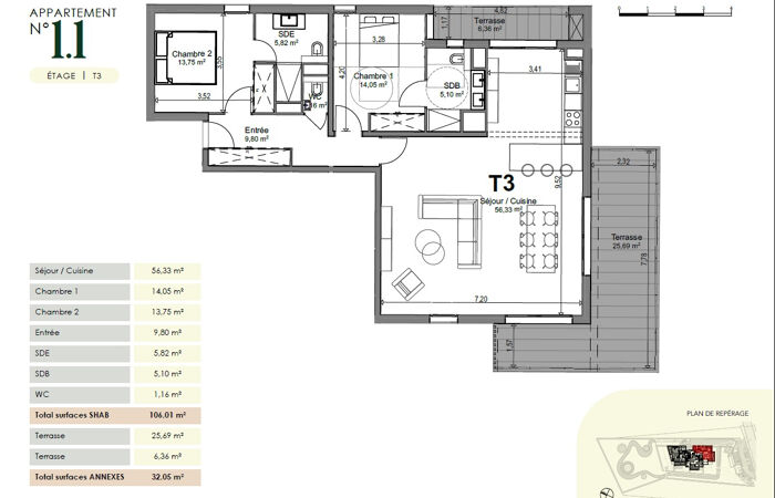 - Surface habitable : 106 m²