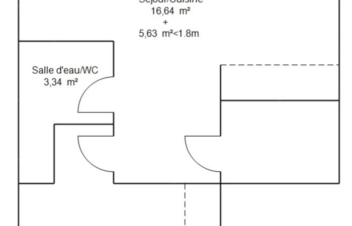 Il se compose d’une pièce de vie 25,5 m² avec cuisine ouverte et équipée, d’une chambre séparée, ainsi que d’une salle d’eau avec toilettes.