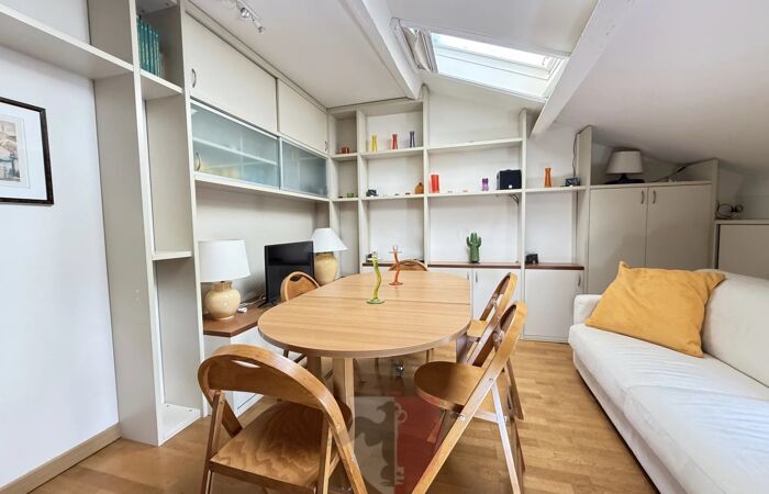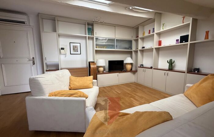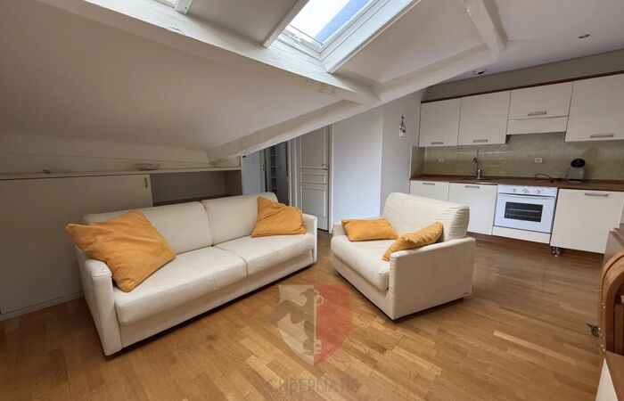 F2 dernier étage - Nice - Jean Medecin En dernier étage et en plein coeur du centre ville à 2 minutes de la place Masséna, charmant 2 pièces meublé et mansardé de 41 m² (35 carrez), situé dans un très bel immeuble niçois avec ascenseur. Il se compose d’une pièce de vie 25,5 m² avec cuisine ouverte et équipée, d’une chambre séparée, ainsi que d’une salle d’eau avec toilettes. climatisation réversible, sans travaux à prévoir, avec meubles sur mesures qui permettent d’optimiser les espaces, lumineux et au calme. Faibles charges (95 euros/mois) Location saisonnière possible A voir rapidement
