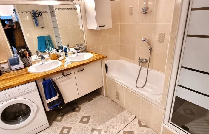 L’espace de vie principal bénéficie d’une belle luminosité grâce à de grandes fenêtres, et le double salon s’ouvre sur une cuisine moderne dotée de nombreux rangements. La salle de bain est fonctionnelle, tandis que les prestations générales de l’appartement assurent un confort optimal au quotidien.