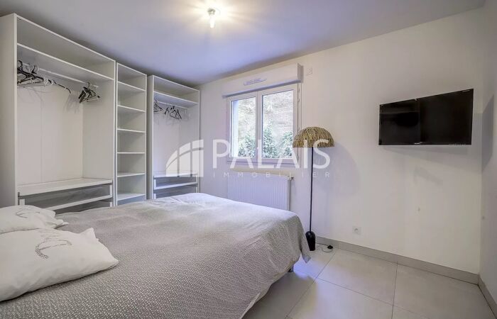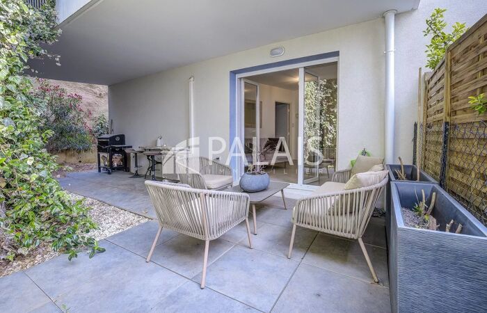 BAS FABRON - Dans une résidence récente, joli 3P en rez-de-jardin de 53.5m², sans vis-à-vis, avec terrasse/jardin de 54m². Composé d'une entrée avec placards, d'un séjour / cuisine avec accès sur l'extérieur, de deux chambres, d'une salle d'eau et d'un wc indépendant. Vendu équipé avec place de parking en sous-sol. Calme absolu, parfait état, à 6/8 minutes à pied de la mer, des commerces et du tramway.