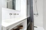 Il se compose d'une entrée, d'un séjour avec cuisine américaine équipée, d'une chambre principale avec salle de bains, d'une deuxième chambre avec salle de douche, d'un wc indépendant et d'un balcon.