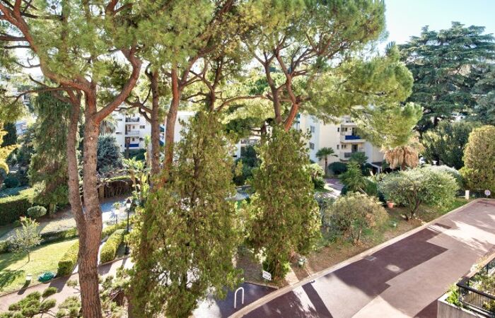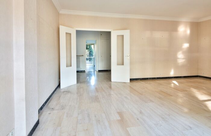 Exclusivité Nice Cimiez, dans une copropriété de standing avec gardien, au sein d'un parc arboré, venez découvrir ce grand 2 pièces traversant de 70 m² au calme absolu. Il se compose d'une belle entrée, d'un séjour double de 30 m² exposé plein sud et prolongé par une terrasse de 10m², d'une cuisine indépendante sur balcon, d'une chambre, d'une salle de bains et d'un wc indépendant. L'appartement est en bon état général mais nécessite des travaux de modernisation. Une cave complète ce bien. Climatisation dans le séjour. Possibilité garage! Une belle opportunité à saisir dans un quartier résidentiel ! Â