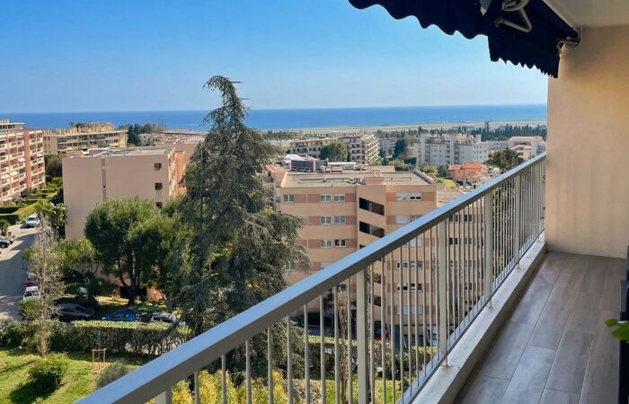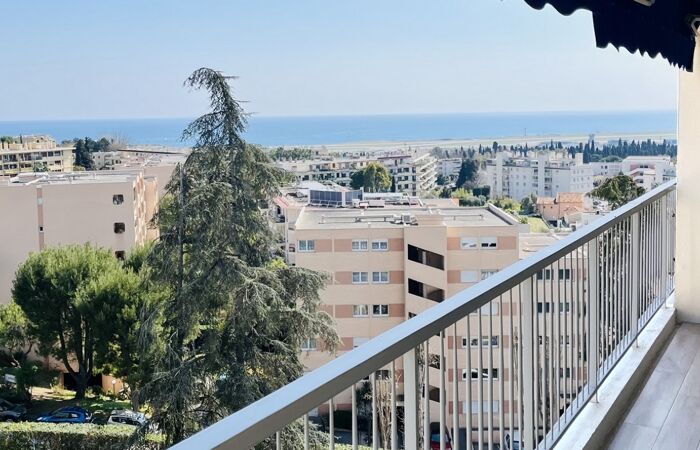L'appartement se compose d'un grand séjour avec cuisine aménagée et équipée, ouvrant sur une agréable terrasse d'environ 14 m² offrant une très belle vue dégagée sur la mer.