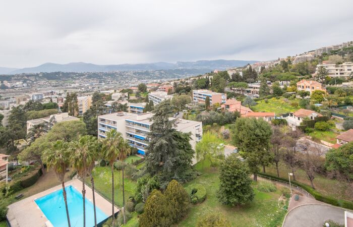 Nice Ouest, Corniche Fleurie. Dans un secteur calme et résidentiel au sein d'une résidence de standing très prisée avec piscine, gardien et ascenseur, découvrez ce bel appartement 4 pièces de 81 m², situé en étage élevé, à proximité immédiate des commerces.
