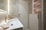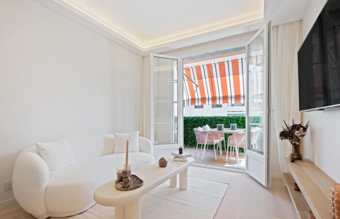 Cet appartement propose des prestations de qualité avec parquet en chêne massif, rangements sur mesure, climatisation réversible, et double vitrage.