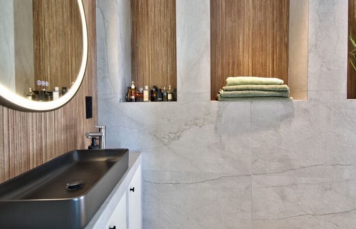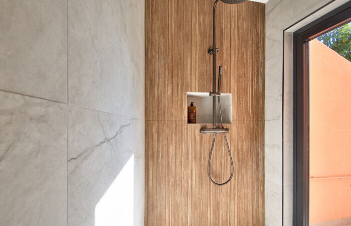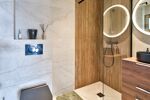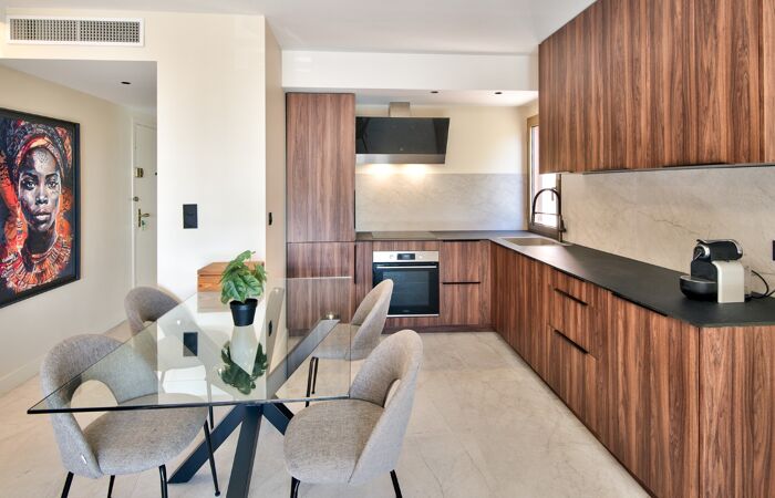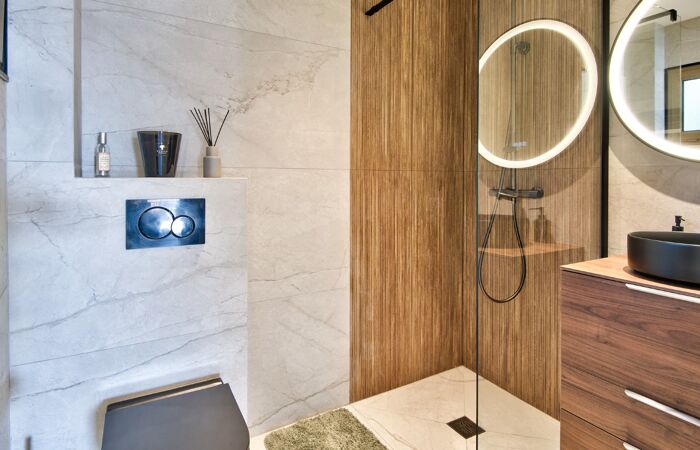Terrasse de 8 m² offrant une vue sur la mer. Il se compose d'une entrée/couloir, d'une chambre spacieuse, d'un séjour/cuisine lumineux de 24,6 m² et de deux salles d'eau avec WC.