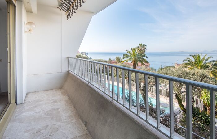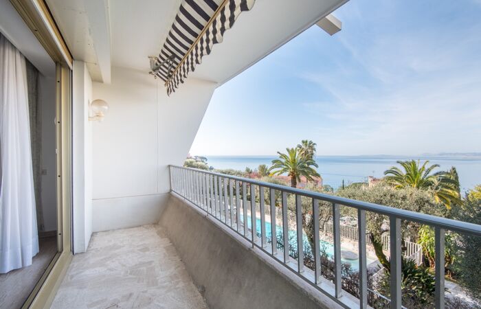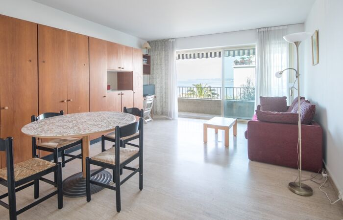 Nice Mont Boron - Dans une résidence de standing très prisée avec piscine, appartement 2 pièces de 53 m² bénéficiant d'une terrasse offrant une jolie vue sur la mer. L'appartement comprend une entrée, une cuisine indépendante, un séjour de 24 m² donnant sur la terrasse, une chambre, une salle de bain et un WC indépendant.