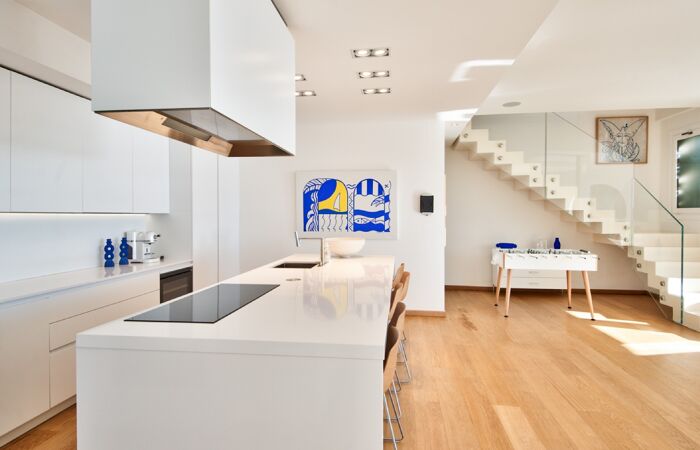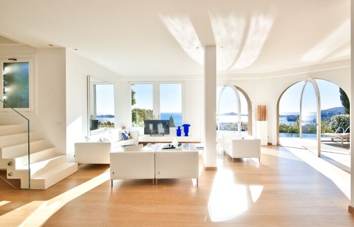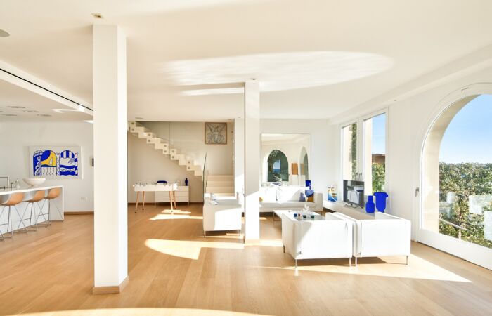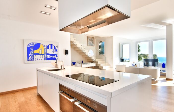 La villa dispose également d'un garage avec accès par ascenseur et se situe à distance de marche des plages, commerces, restaurants et commodités essentielles.