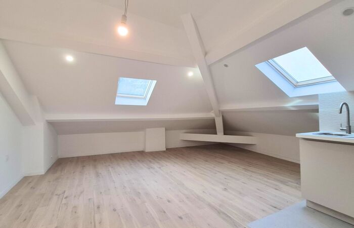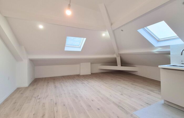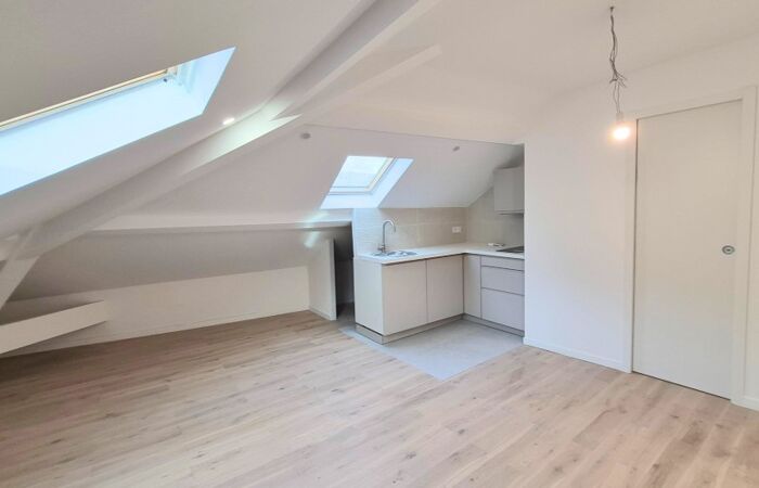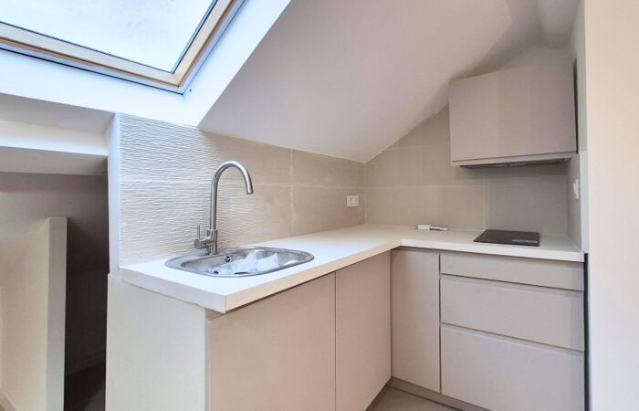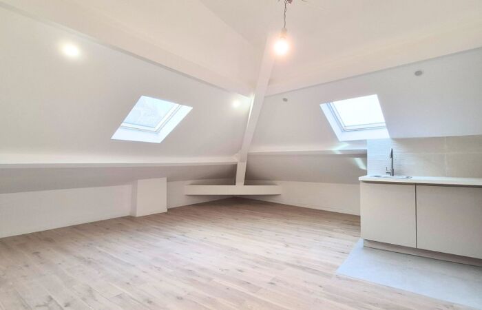 NICE - TETE CARREE / NOUVELLE COULEE VERTE : situé en dernier étage sous les toits, beau studio de 24.09 m2 habitables ( 12.77 m² loi Carrez), entièrement rénové et climatisé. Une belle pièce principales de 21.6 m² au sol avec 2 Velux, une cuisine américaine équipée et une salle de douche avec un WC. Tout type de location est autorisée. La copropriété est entièrement réhabilitée. Bon emplacement !