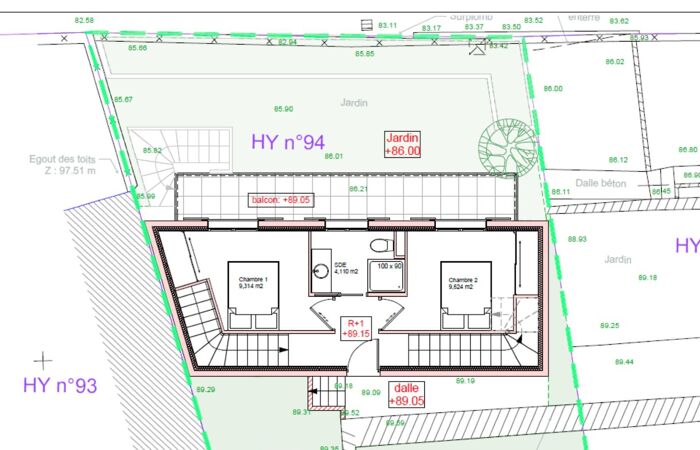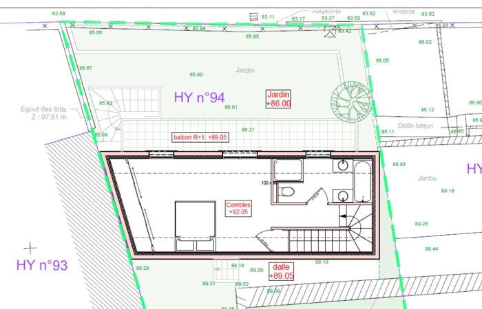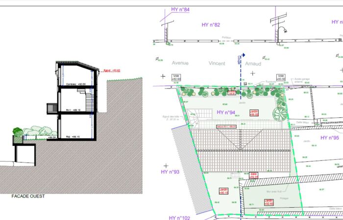 NICE -EST : Terrain à bâtir d'une surface de 148m² avec permis de construire validé pour une maison d'environ 92,85 m2m² sur 3 niveaux .