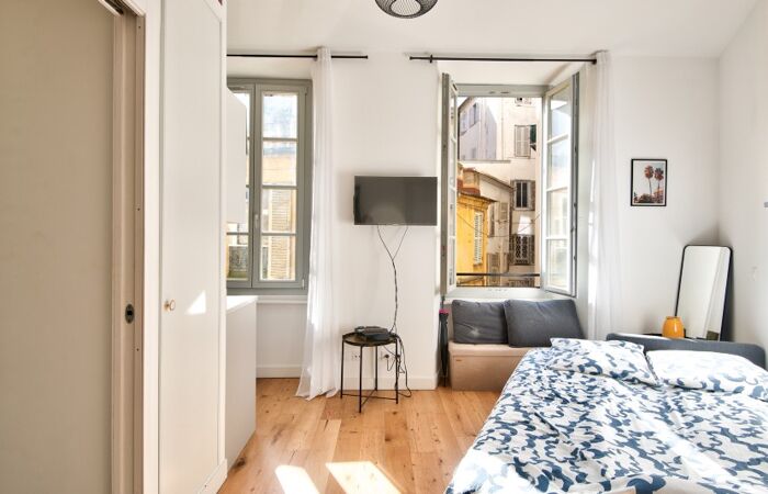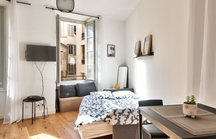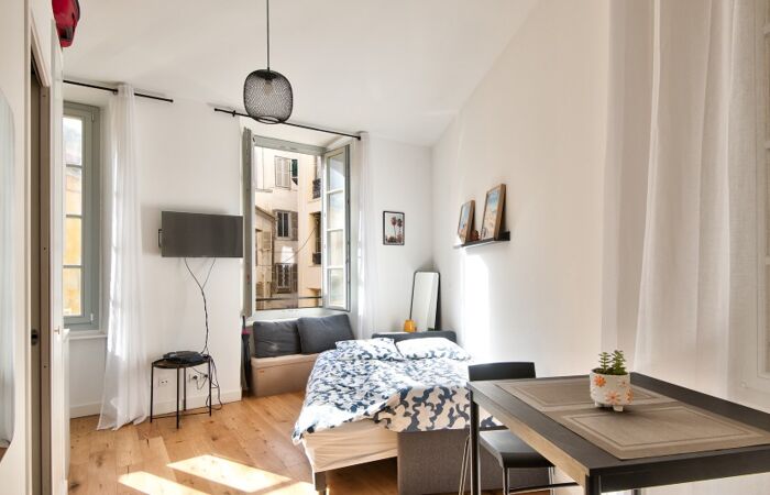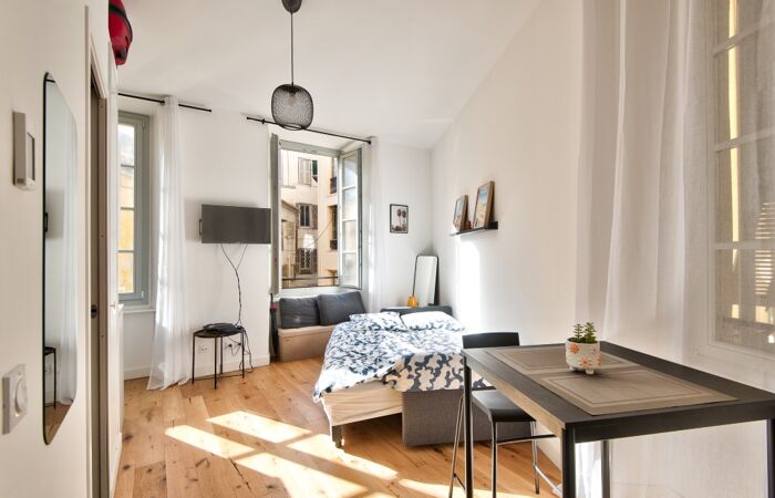 Studio meublé de 21 m² environ conjuguant prestations contemporaines de standing et cachet de l'ancien, au calme, lumineux et profitant d'une belle hauteur sous plafond.