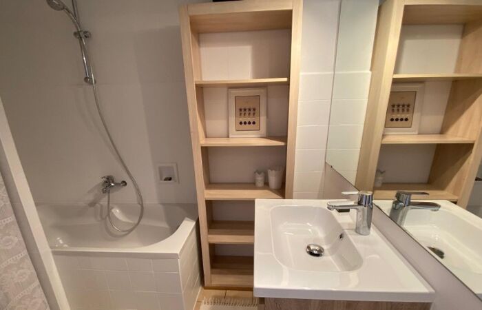 L'appartement se compose d'une entrée avec rangement, d'un séjour ouvrant sur terrasse, d'une cuisine indépendante aménagée et équipée donnant sur terrasse, d'une chambre donnant sur terrasse, d'une salle de bain, toilettes séparés.