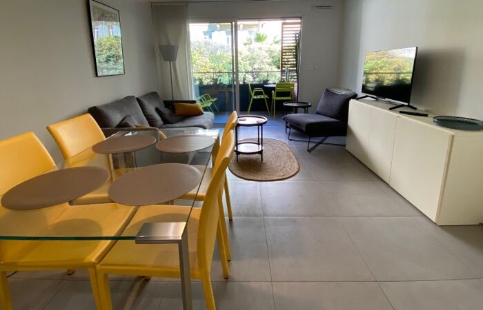 L'appartement se situe dans une Résidence de standing, au calme, il se compose d'une entrée avec des rangements, un séjour avec la cuisine américaine aménagée et toute équipée, une grande chambre avec des placards, une salle de douches, un toilette séparé.