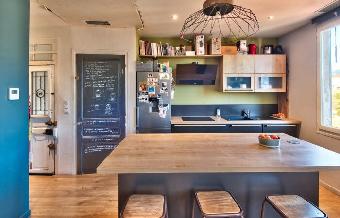 Situé dans un secteur calme, composé de maisons, cet appartement au 1er et dernier étage d'une maison niçoise sans ascenseur, se compose d'une entrée, d'un salon - cuisine ouverte de 39 m² avec une vue dégagée, de 2 chambres et d'une salle d'eau avec WC.